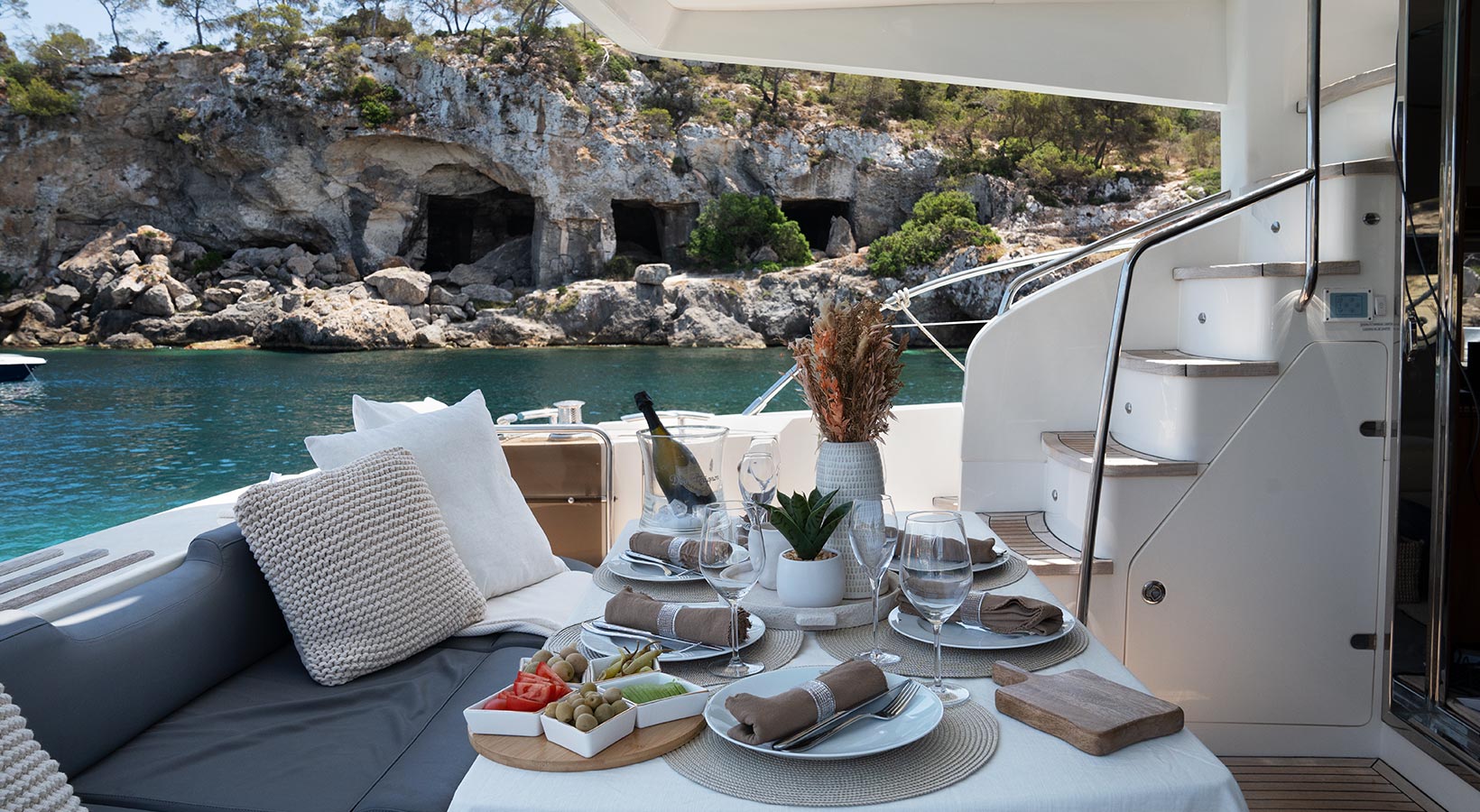 An Bord steht Ihnen eine kleine Bar mit Softdrinks, Bier und einer Flasche Wein zur Verfügung. Wenn Sie möchten, organisieren wir gerne zusätzliche Getränke, einen Private Chef oder liefern Speisen an Bord. Auch Restaurant- oder Beachclub-Reservierungen übernehmen wir auf Wunsch.